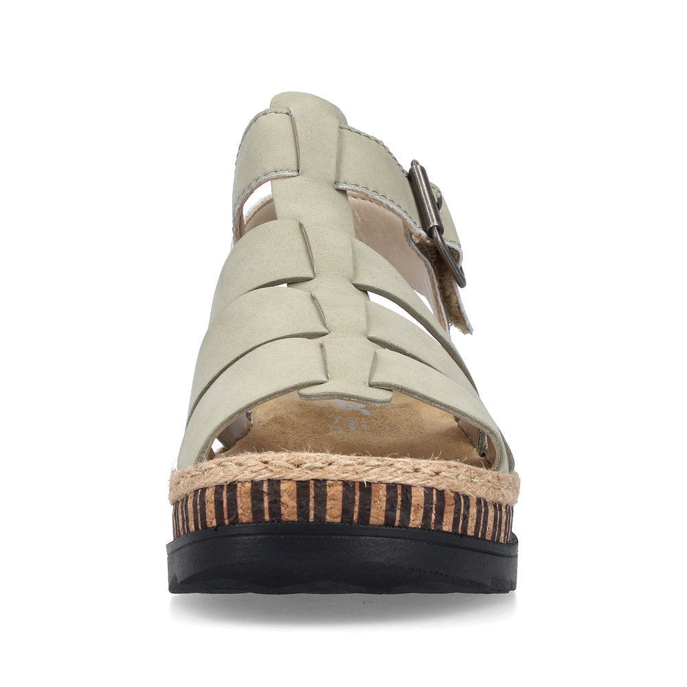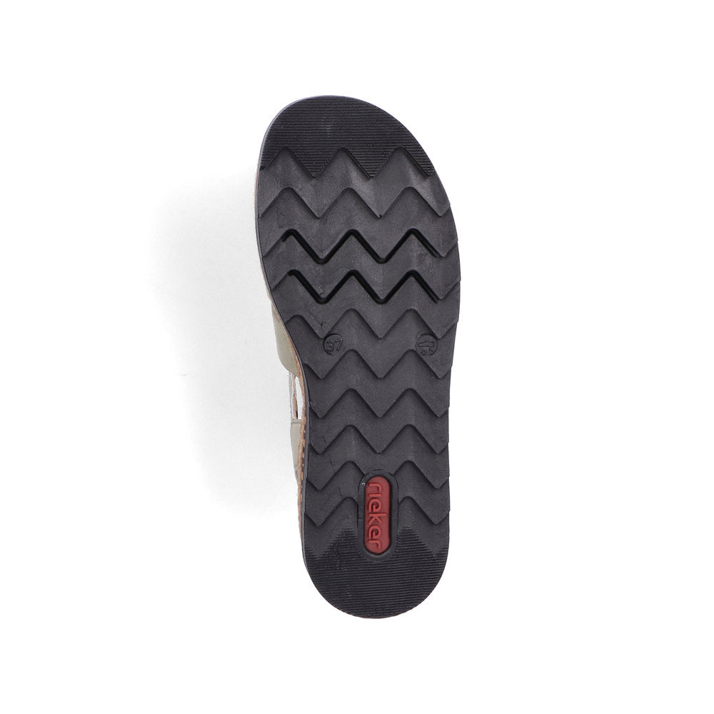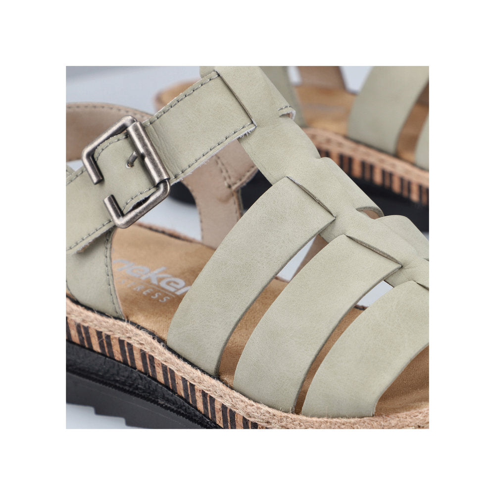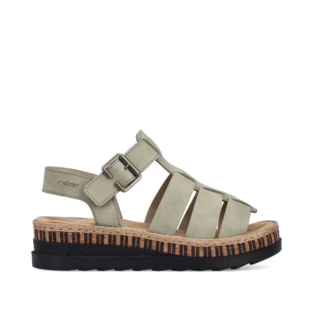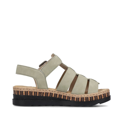 Rieker green leather flat sandals perfect for the sunny weather and holidays. Crafted with a leather upper and textile lining for everyday comfort.