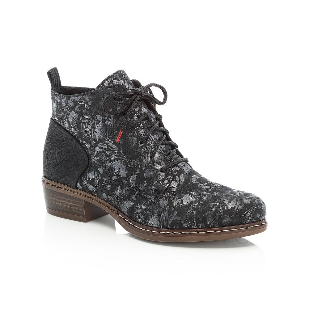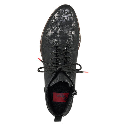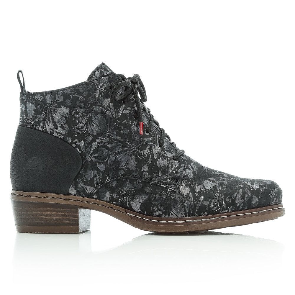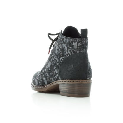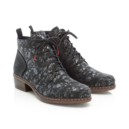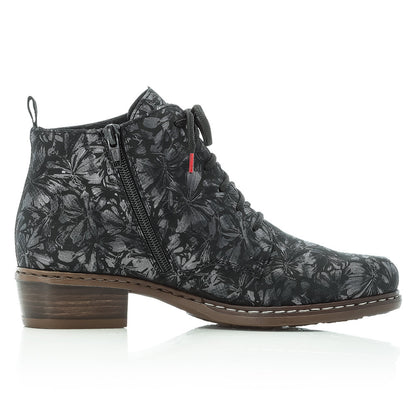 Rieker Ladies Lace Up Ankle Boot Metallic Floral Print