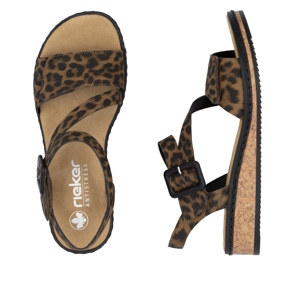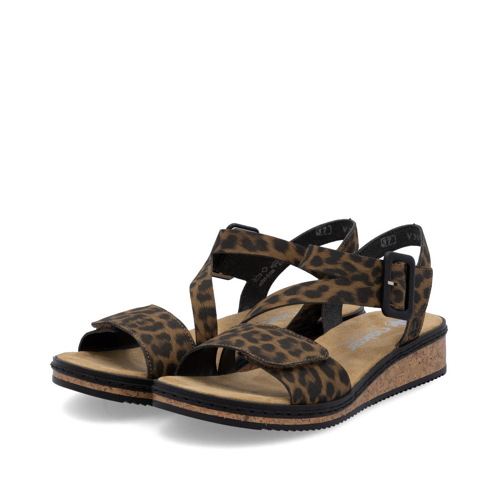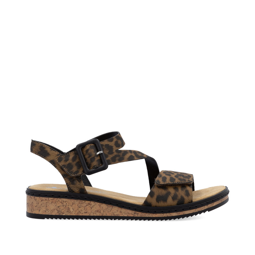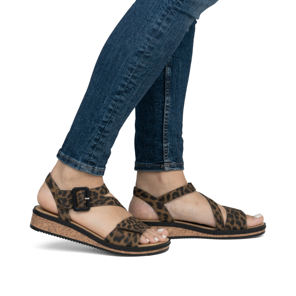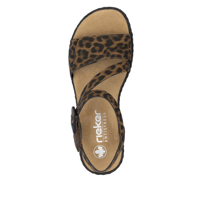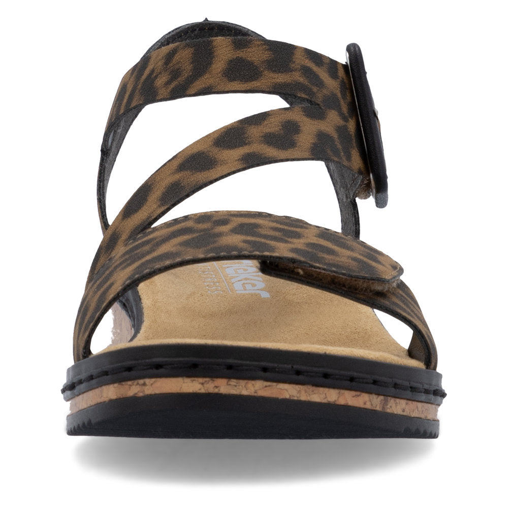 Rieker Ladies Leopard Print Cross Strap Sandal