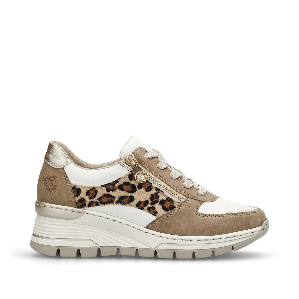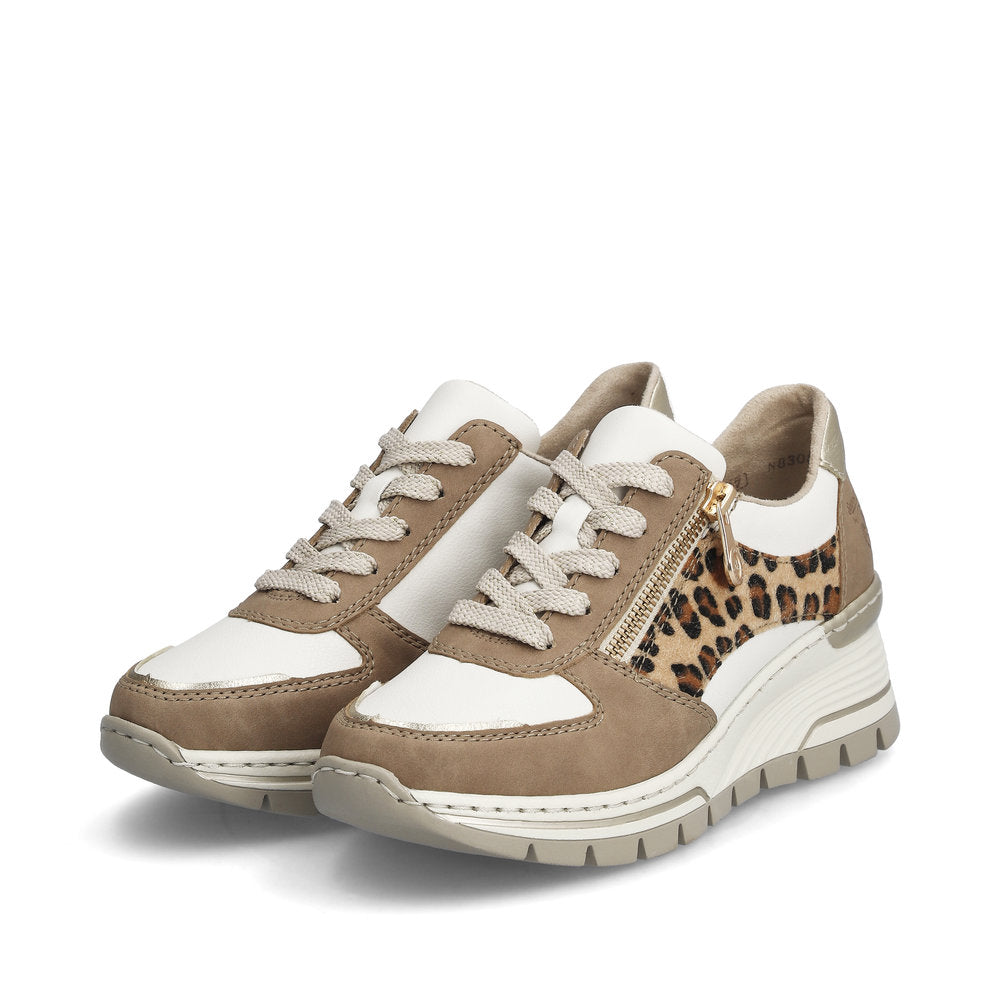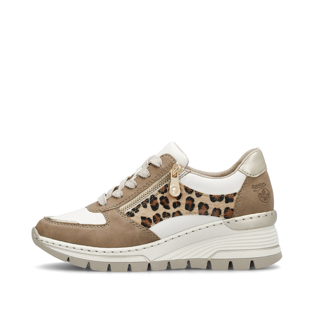 Rieker Ladies Leopard Trim Wedge Heel Sneaker