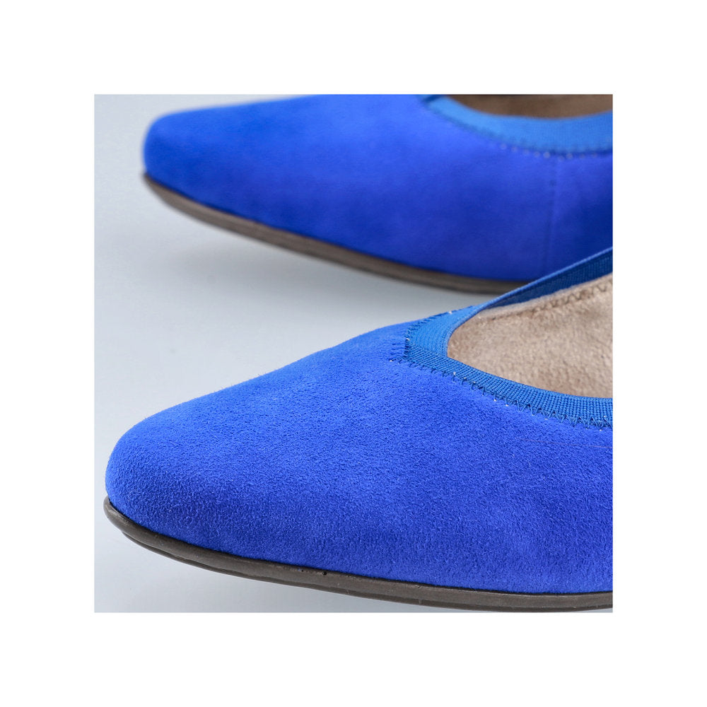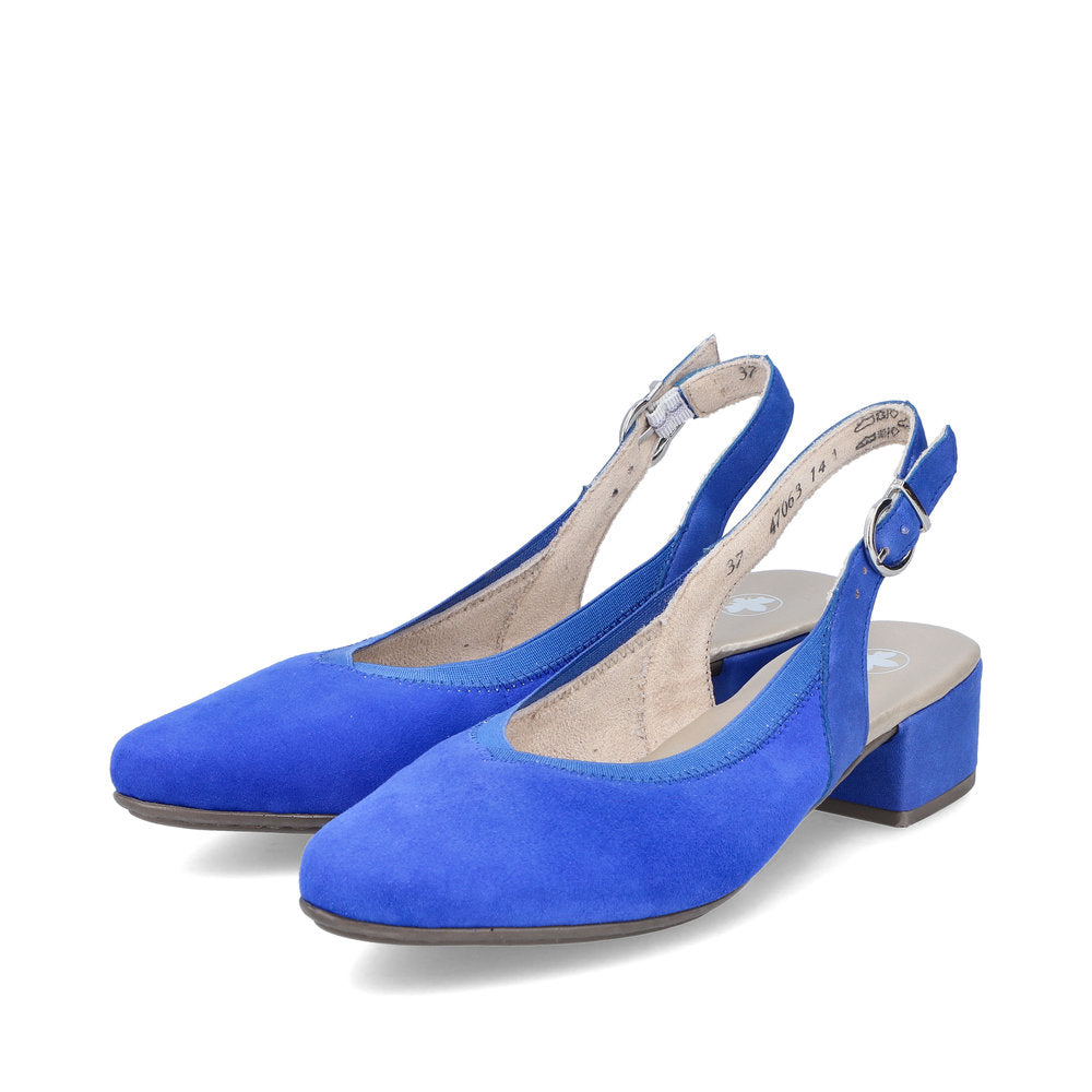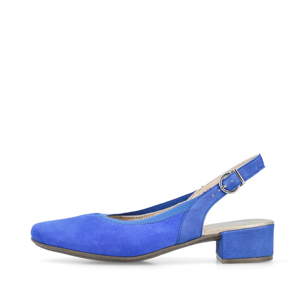These sky blue slingback pumps are made of suede leather and are closed with a buckle. The light and shock-absorbing sole with block heel offers maximum comfort.