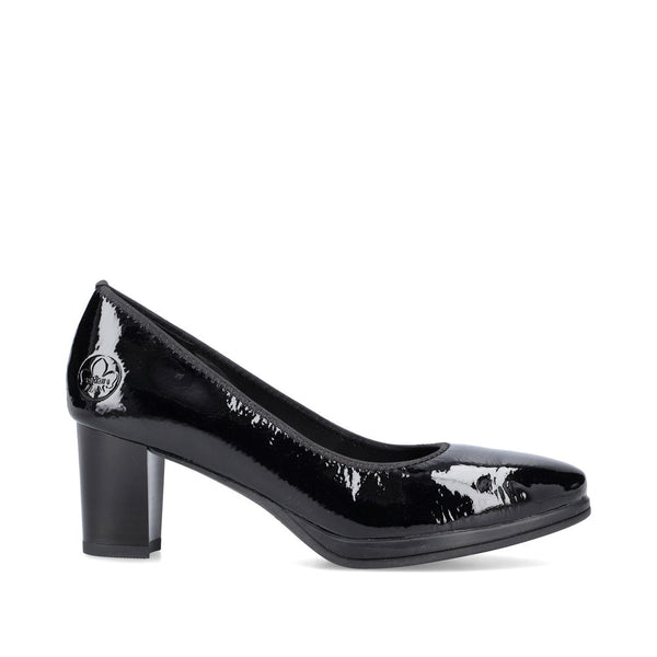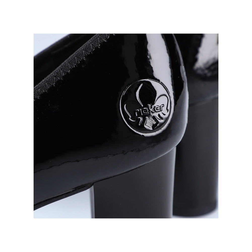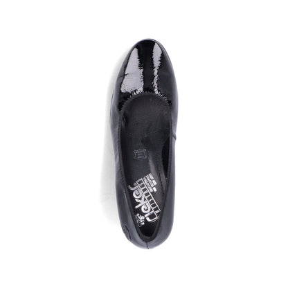 Rieker Ladies Mid Heel Crinkle Patent Court Shoe