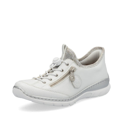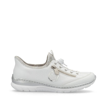 Rieker ladies pull on sneaker crafted with a synthetic upper and a textile lining these trainer offer everyday comfort
