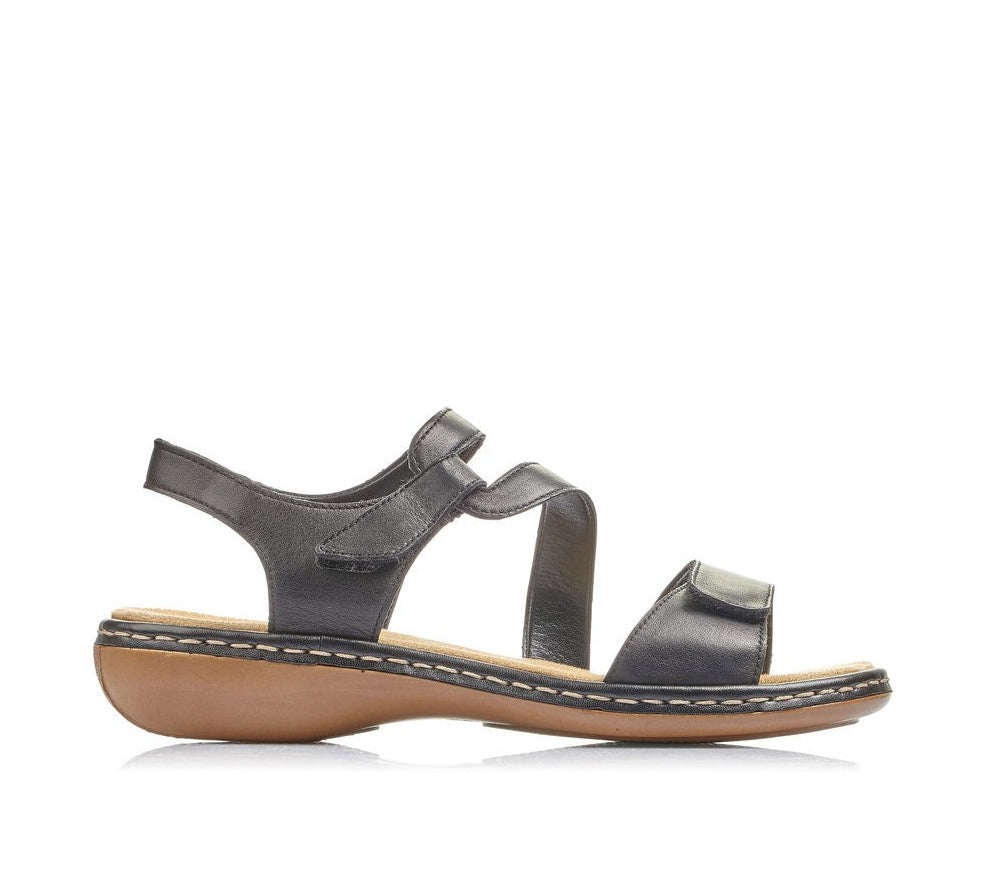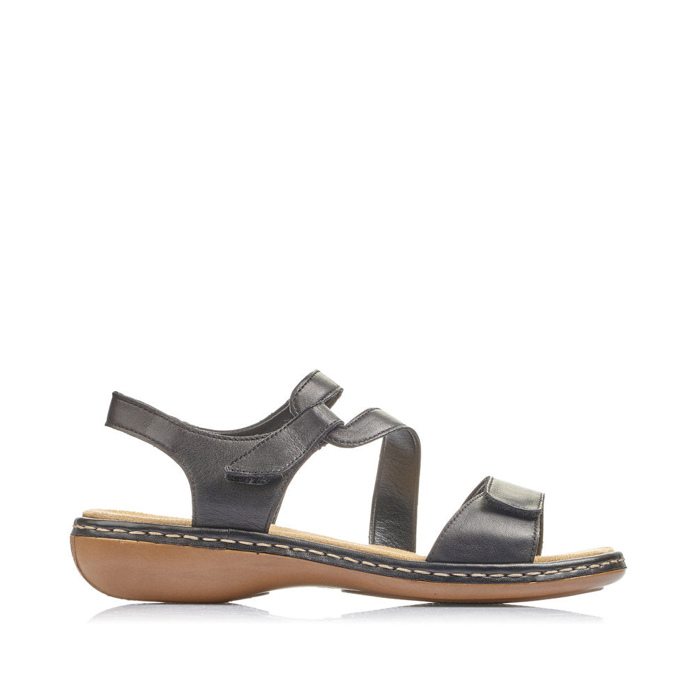 Rieker ladies sandals crafted in leather with textile lining and footbed for everyday comfort.