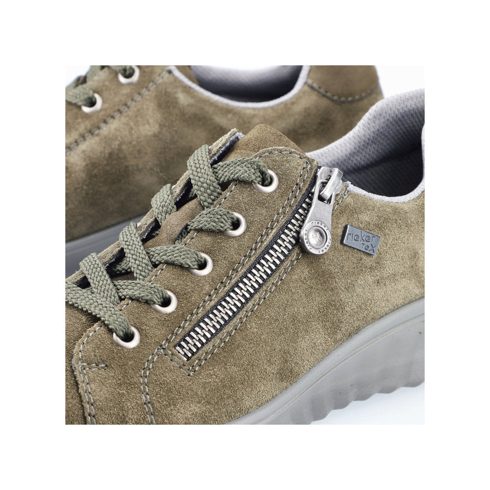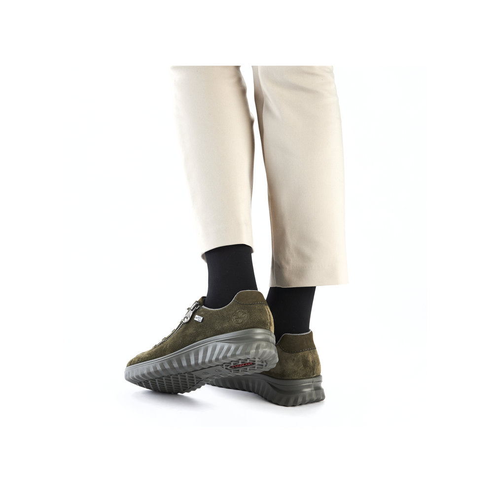 Elevate your casual wardrobe with these versatile trainers from Rieker. The 59000 is crafted with a premium nubuck leather upper, soft textile lining for added breathability and a synthetic sole unit for reliable traction and stability underfoot. It features a water-resistant membrane, making them ideal for various weather conditions, and a removable textile insole offers excellent cushioning. It is finished with both lace-up and outer zip fastenings for an easy and secure fit.