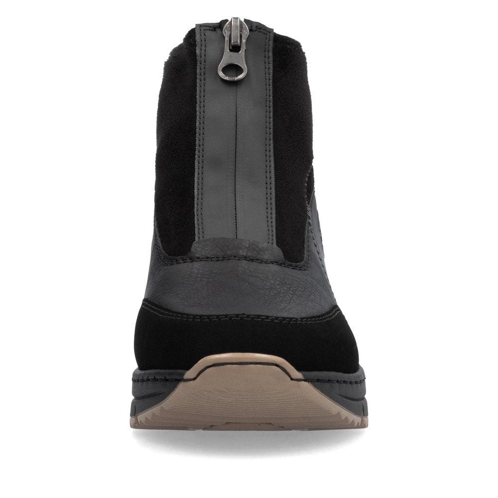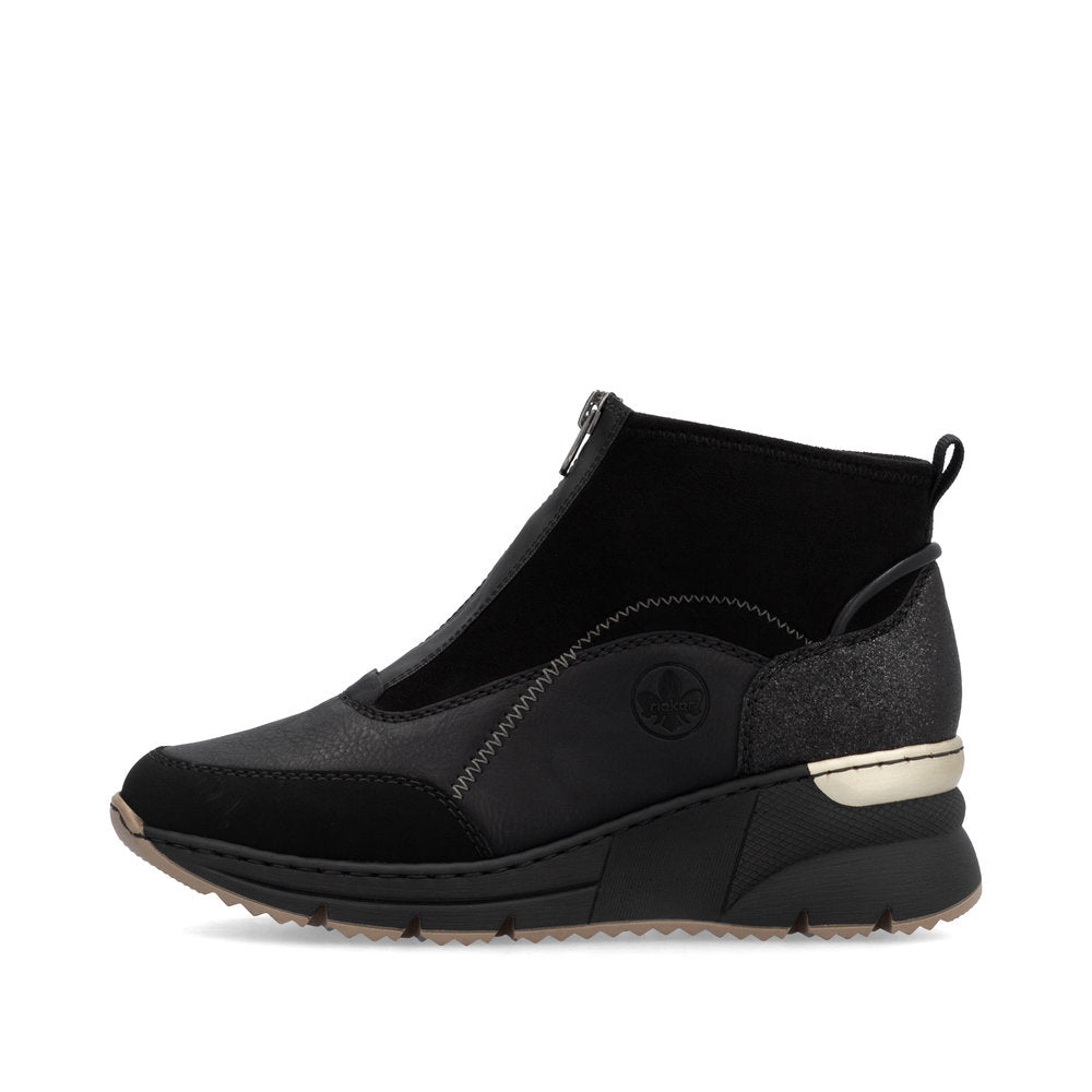 These black Rieker hi-tops feature a wedge heel and zip front.