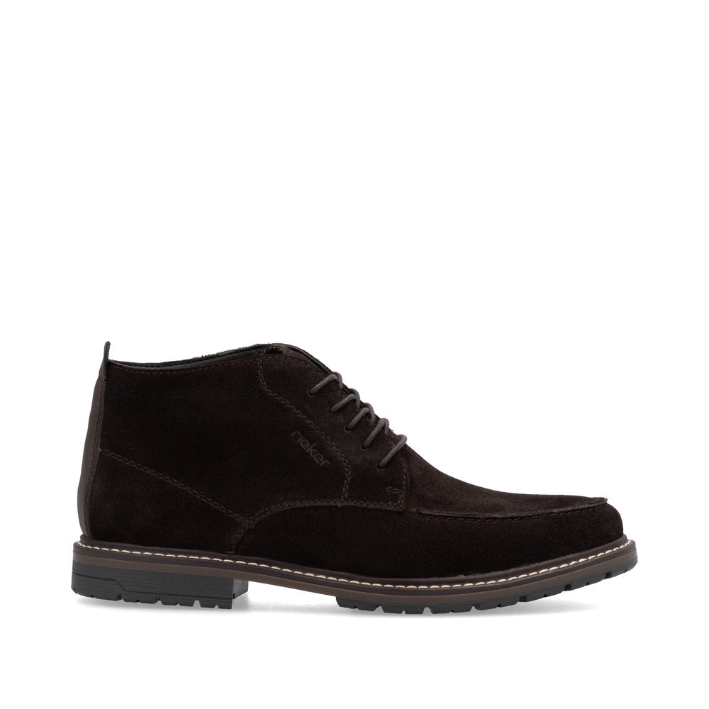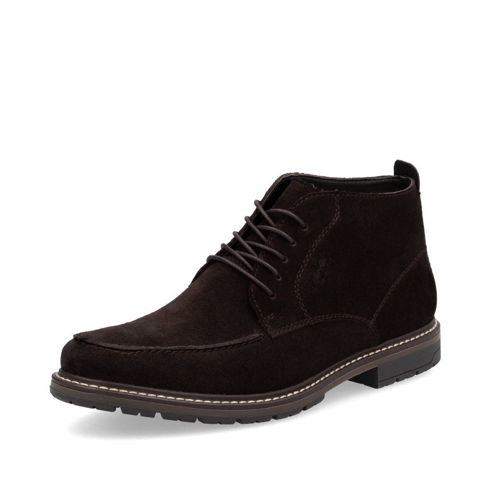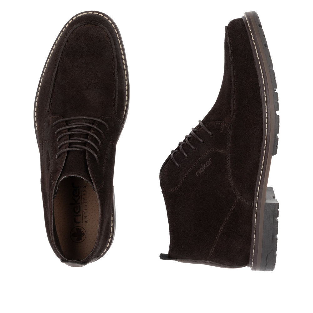 Rieker Men's Lace-Up Chukka Boot, a perfect blend of style and comfort. Crafted from premium suede, these boots feature a rich Moro colour that effortlessly complements any wardrobe. The textile lining ensures breathability, while the leather insole provides exceptional comfort and support for all-day wear.