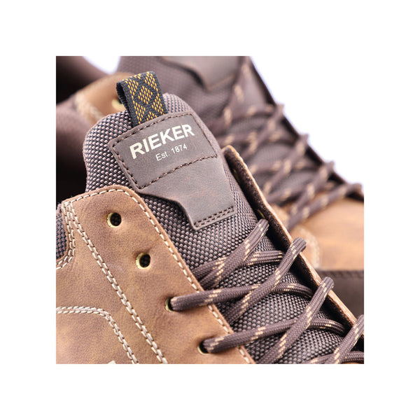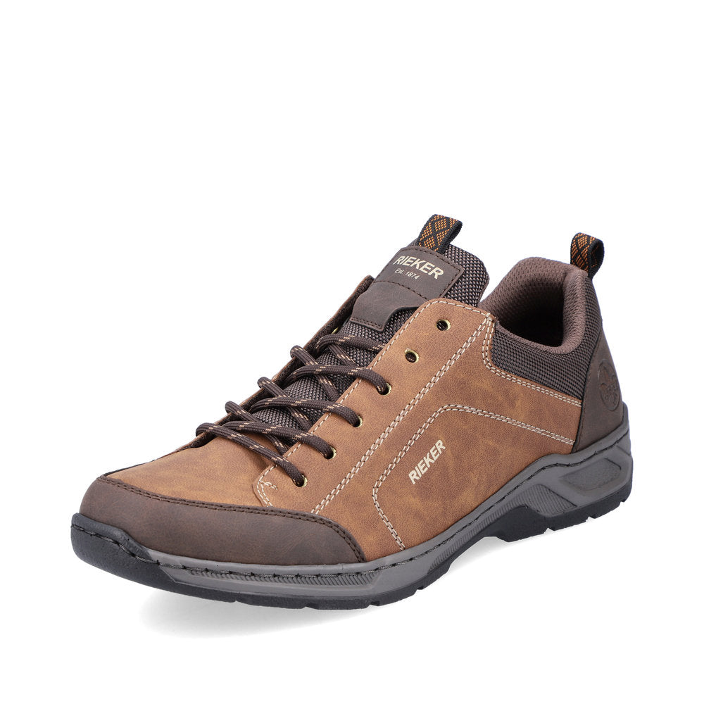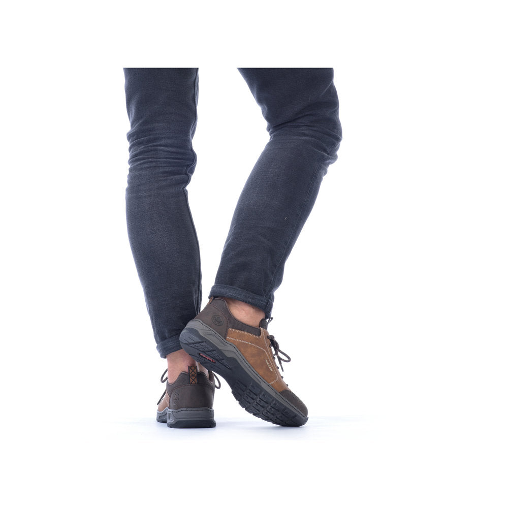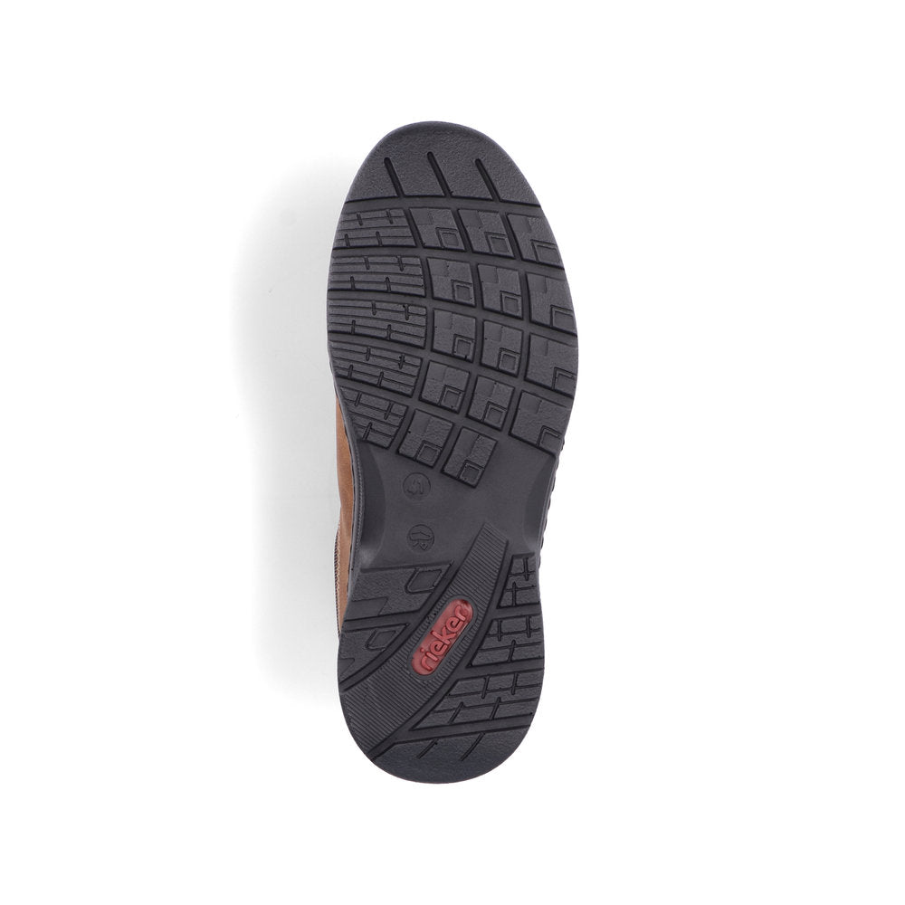 The lining and the removable insole are made of this skin-friendly material. In addition, the edge of the shaft is thickly padded. The flexible outsole with the Antistress effect provides ideal shock absorption of your steps. The design of the lace-up shoe is kept very masculine and also the colour choice has succeeded Rieker perfectly. The imitation leather upper in dark and light brown and the dark brown synthetic also go very well with the patterned lacing straps, with which you can regulate the shoe width.