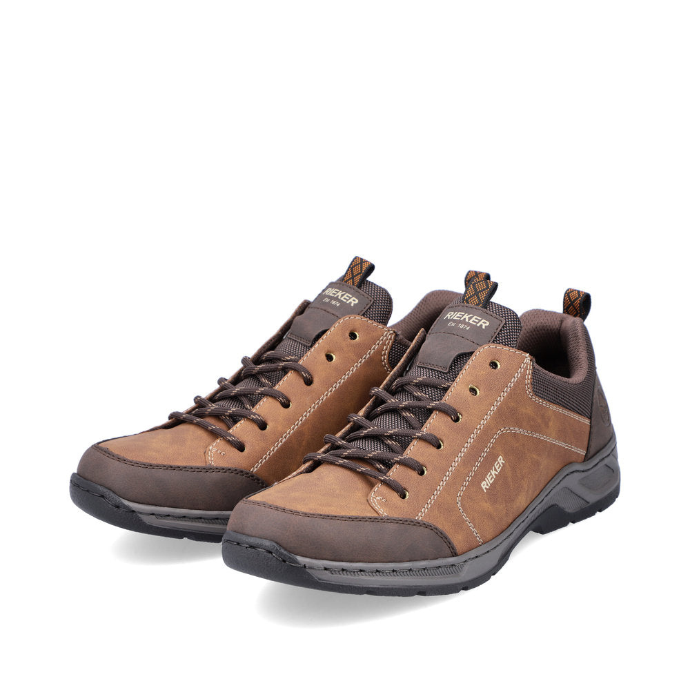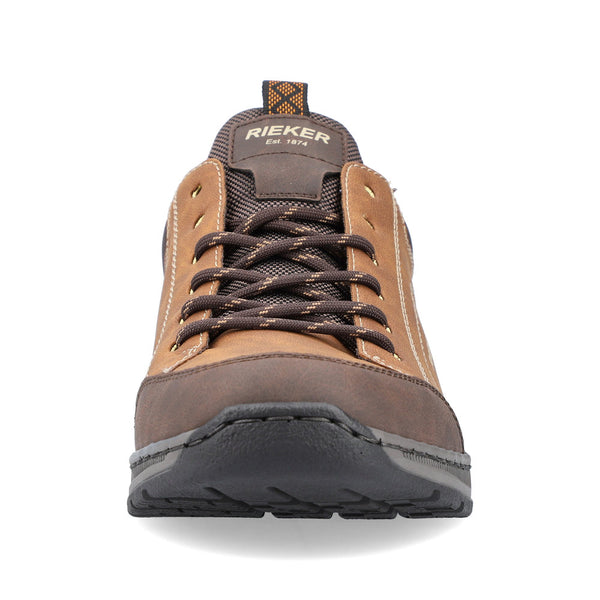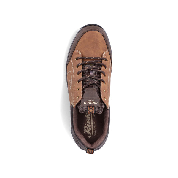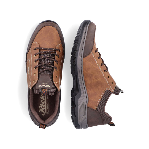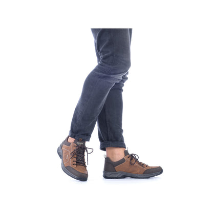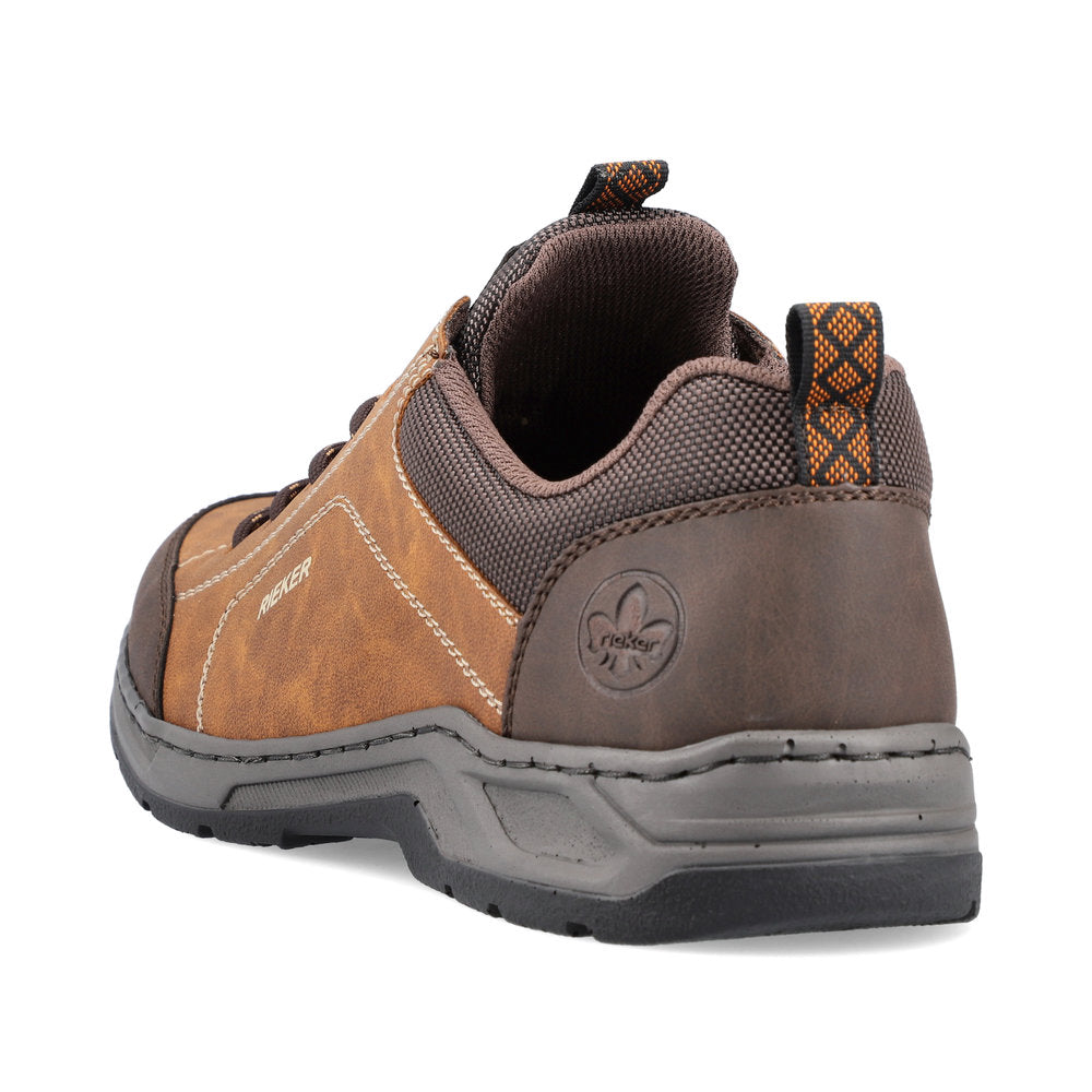 The lining and the removable insole are made of this skin-friendly material. In addition, the edge of the shaft is thickly padded. The flexible outsole with the Antistress effect provides ideal shock absorption of your steps. The design of the lace-up shoe is kept very masculine and also the colour choice has succeeded Rieker perfectly. The imitation leather upper in dark and light brown and the dark brown synthetic also go very well with the patterned lacing straps, with which you can regulate the shoe width.