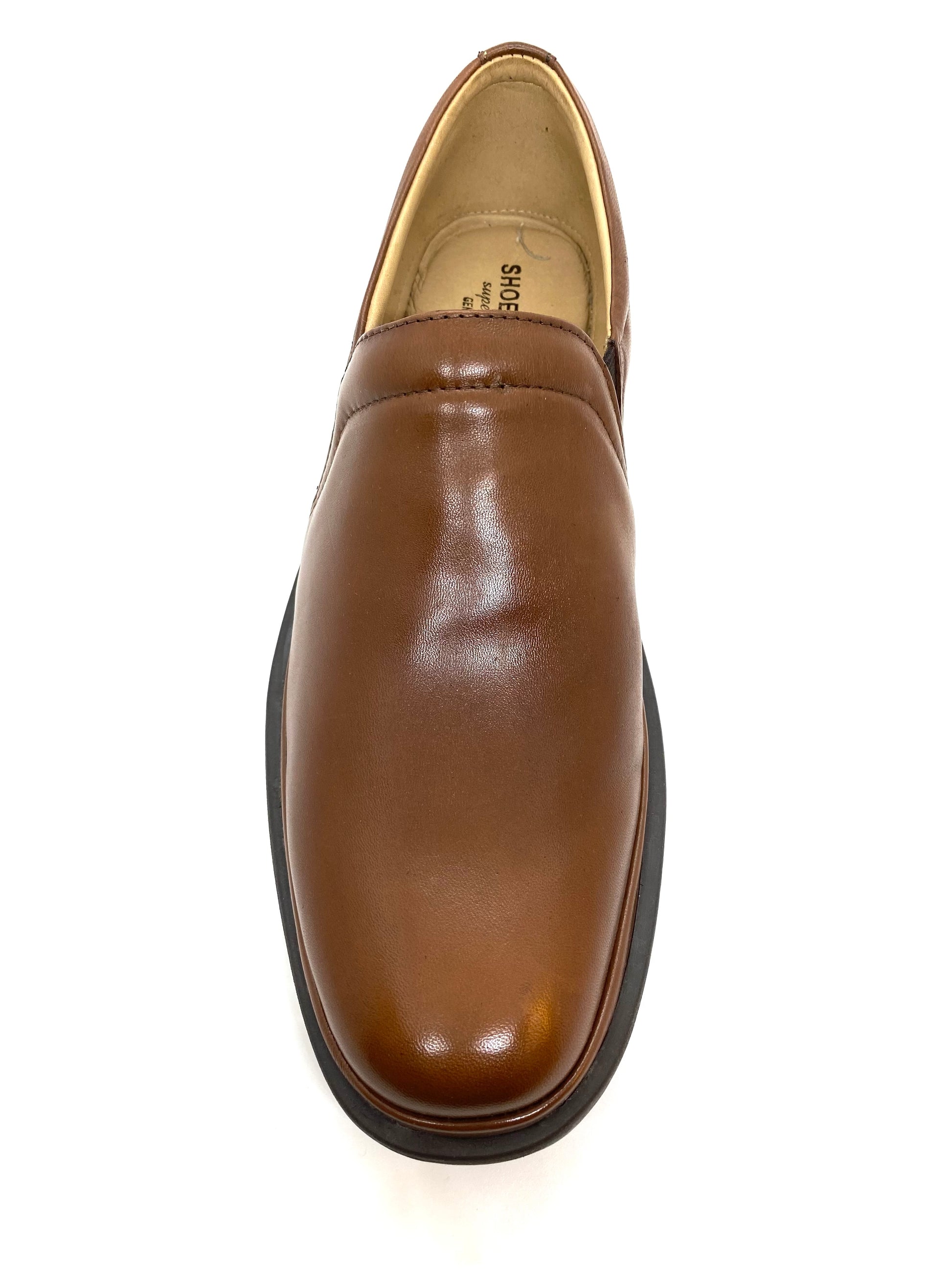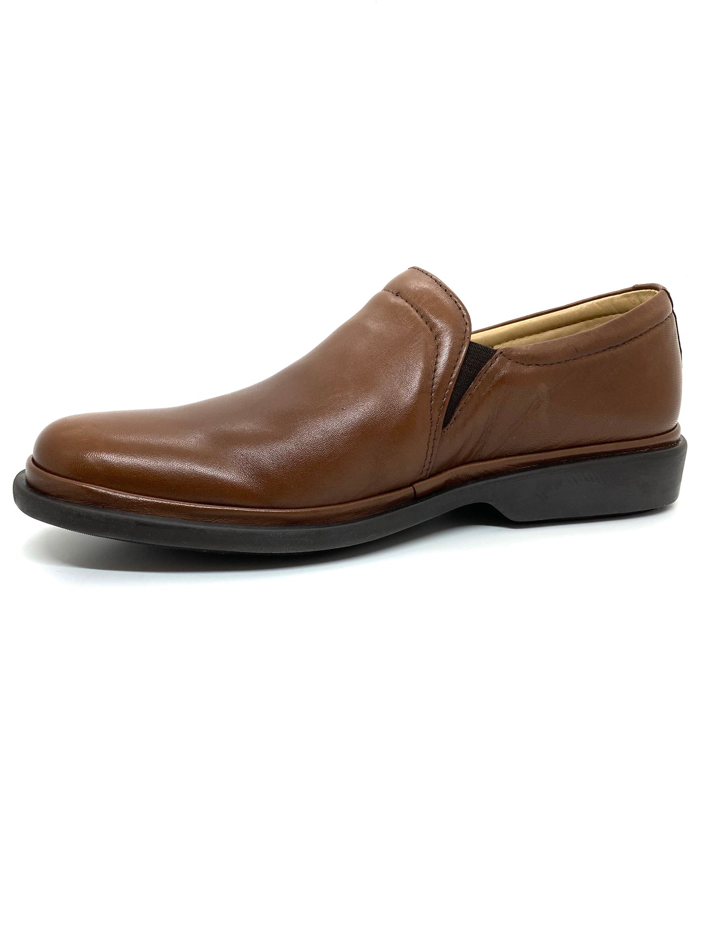 Scout by Shoe Therapy. Enjoy incredible comfort with these leather slip-on shoes. With cushioned insoles for comfort and small elasticated panels to either side of the vamp to allow easy foot entry.