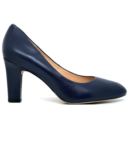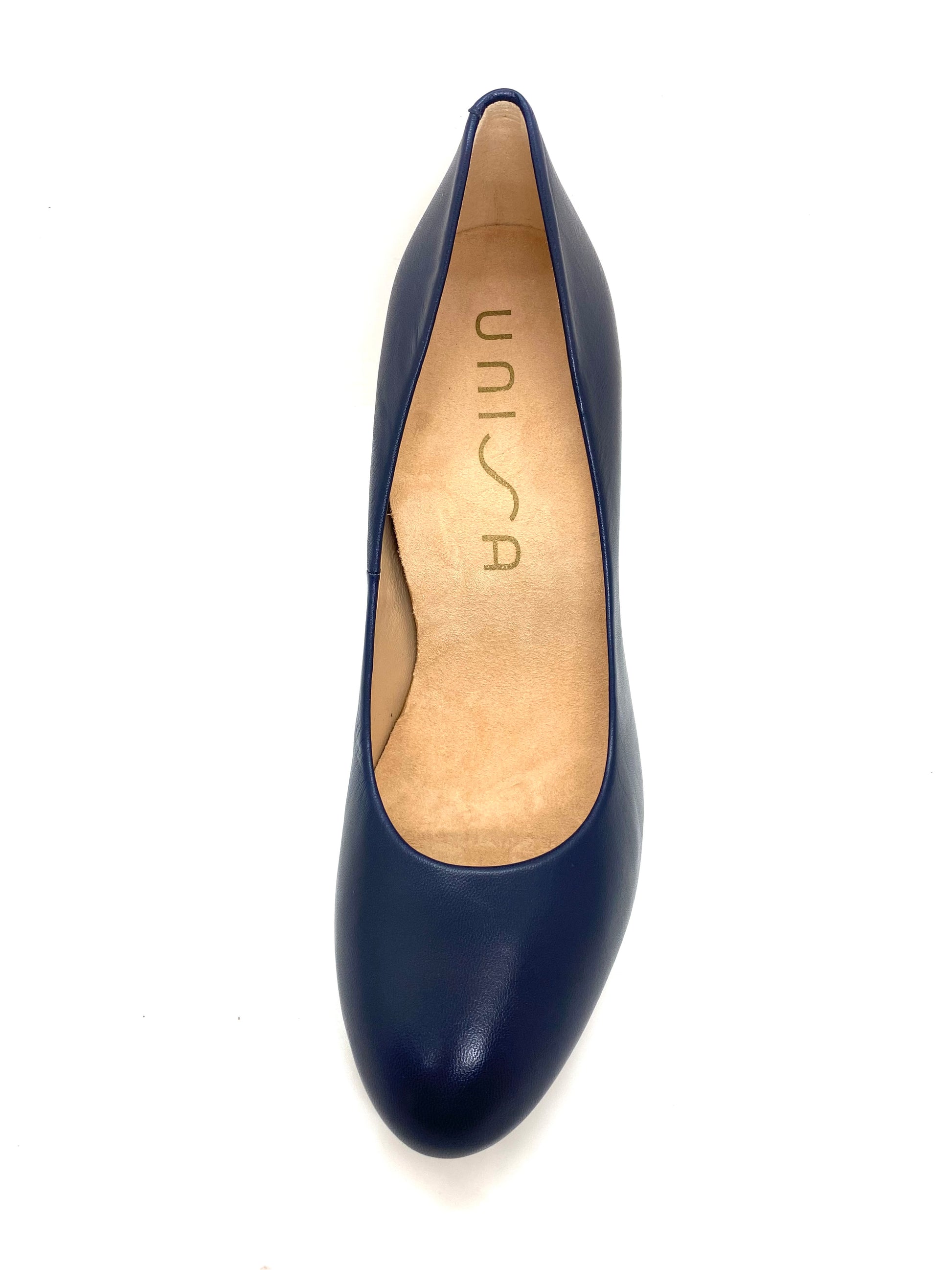 Ocean blue leather pumps by Unisa. Round toe shape and 80 mm leather covered high heel. A great level of comfort is provided by a removable innersole and a non-slip and flexible sole.