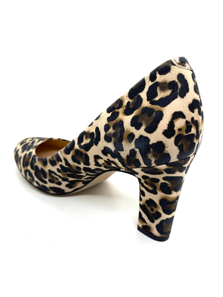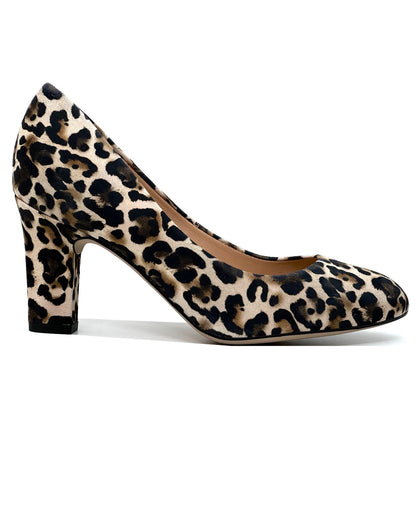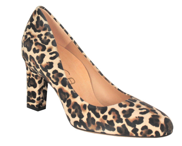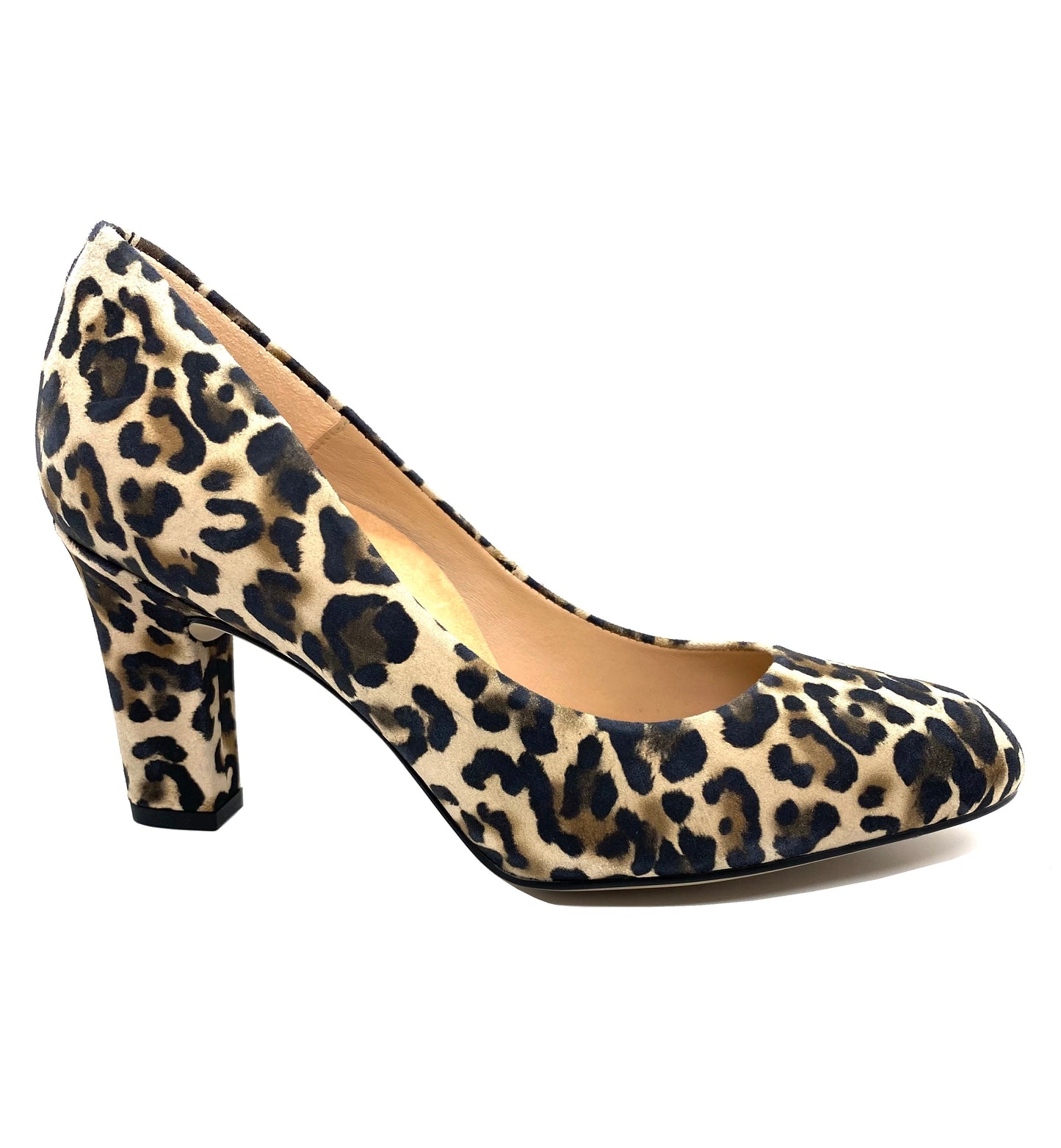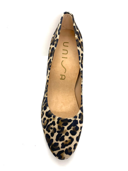 Leopard print leather pumps by Unisa. Round toe shape and 80 mm leather covered high heel. A great level of comfort is provided by a removable innersole and a non-slip and flexible sole.